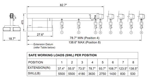 Forklift Long Mobile Crane Lifting Hoist Jib Boom 5500lb Capacity